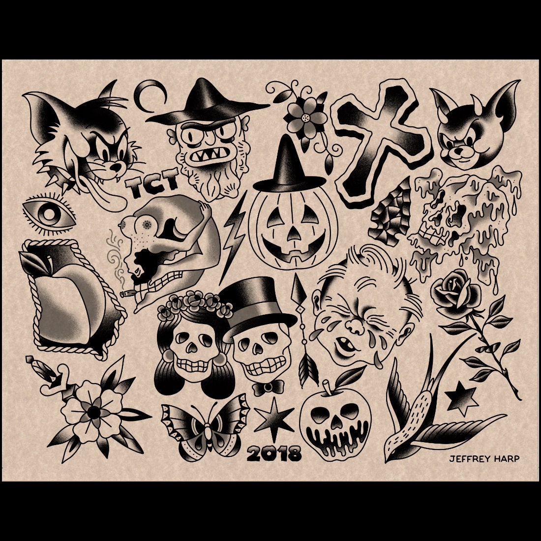 2018 Halloween Tattoo Flash Sheet One Etsy
